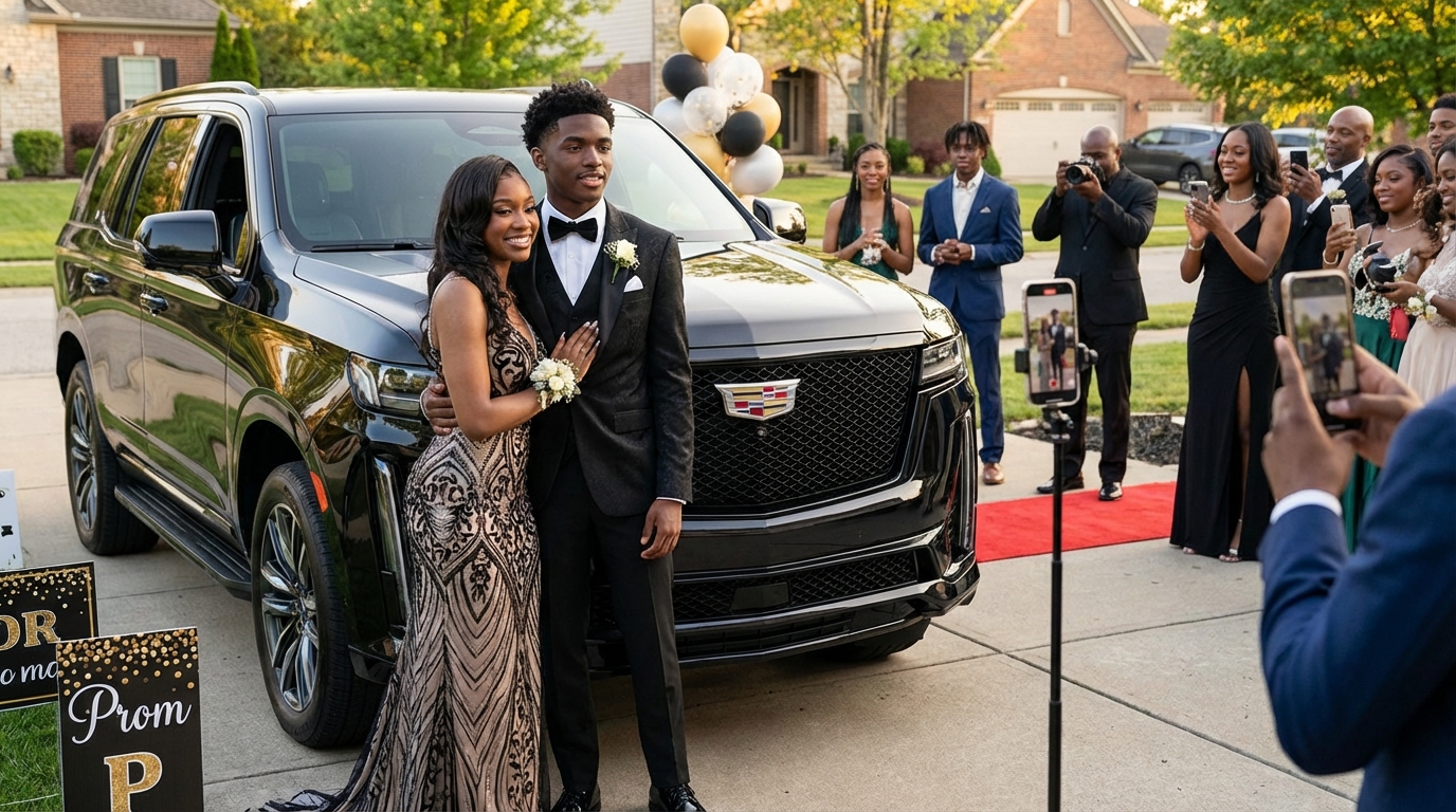 Ride to prom in luxury with Black Elegant Transportation — pickup and ride home included. One flat price. No surprises. No hidden fees.